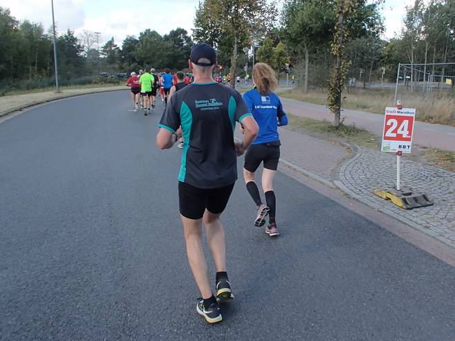Deliusweg 11.23 Uhr / Km 21,2 Na gut, da hatten wir also ein klein wenig Vorsprung. Konnte ja hilfreich werden. Foto: M. Nuschke |