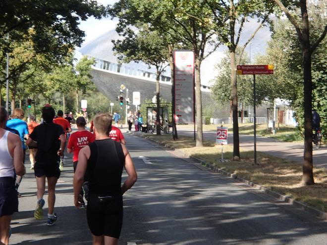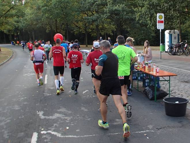 Parkallee 11.44 Uhr / Km 25,3 Nächster Verpflegungsstand. Offiziell gab es bis hier alle fünf Kilometer und ab hier alle 2,5 Kilometer einen. Demnach war der am Berufsbildungswerk bei Kilometer 23,6 kein offizieller Stand. Aber Wasser ist Wasser ist Wasser. |