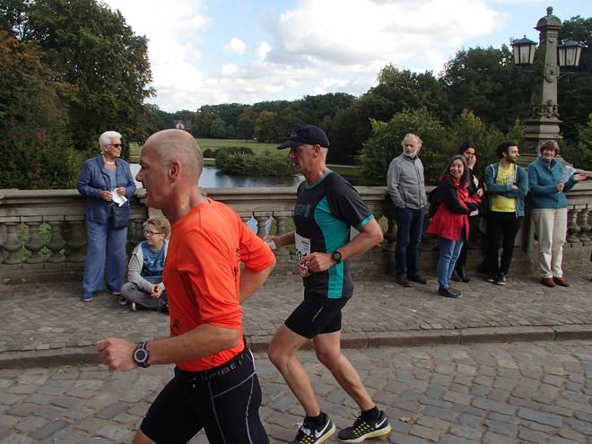Bürgerpark Melchersbrücke 11.54 Uhr / Km 27,5 Jetzt wollte ich unter den 3:30 Stunden bleiben. 2014 war mir das noch viermal gelungen, 2015 schon nur noch einmal. Und wer weiß, ob ich es jemals wieder schaffen würde. |