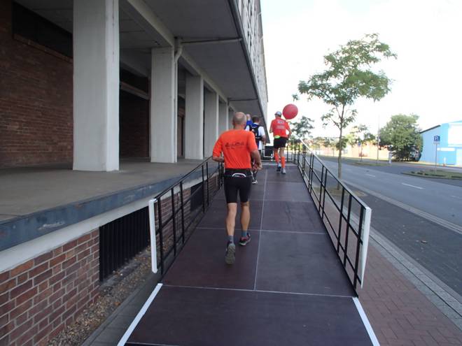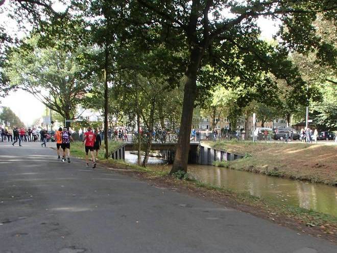 Habenpromenaad 12.23 Uhr / Km 33,3 Nun war ich zwar am vorderen Ballon-Läufer, dem Heinz, dran, aber von Kilometer zu Kilometer wurde der Vorsprung auf die Plan-Zeit geringer. So wie der abnahm, würde es am Ende ziemlich knapp werden können. |