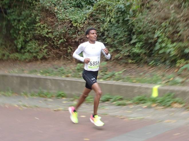 Meta-Sattler-Straße 12.13 Uhr / Km 31.2 Haftom Weldaj vom TSV Pattensen sollte das Rennen später in 1:11:46 Stunden gewinnen. |