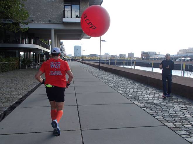 Stader Straße 11.03 Uhr / Km 16,8 Mit meinem Tempo-Vorstoß ging es auch nicht mehr so richtig voran. Statt weiter an Vorsprung zu gewinnen, hatte ich eher das Gefühl, die Ballons kämen wieder näher. |