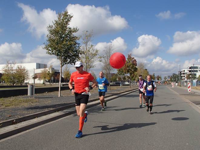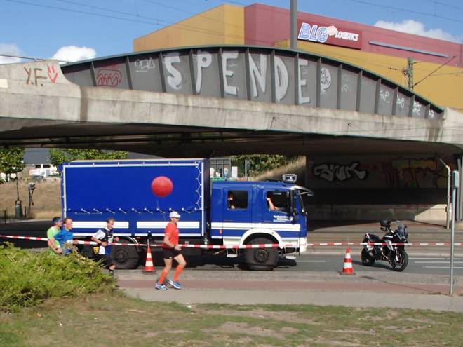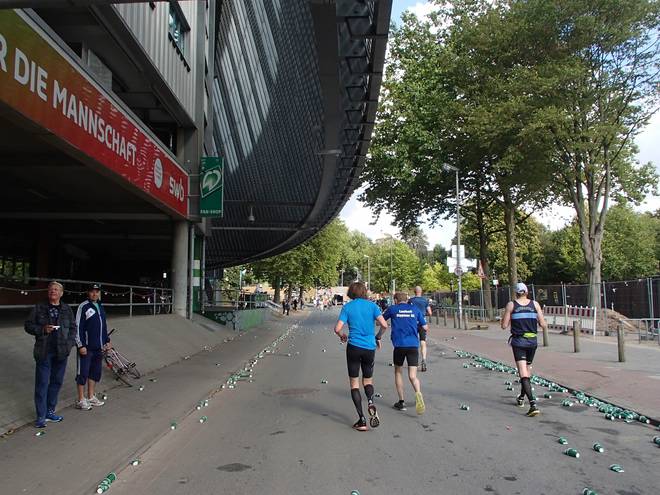 Weserstadion 12.49 Uhr / Km 38,3 Vielleicht noch 40 oder 50 Meter lagen Heinz und sein Ballon hinter mir. Foto: Aron Kankel |