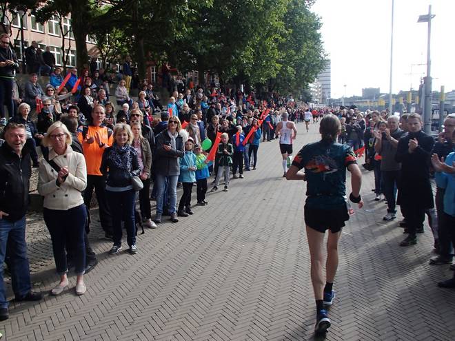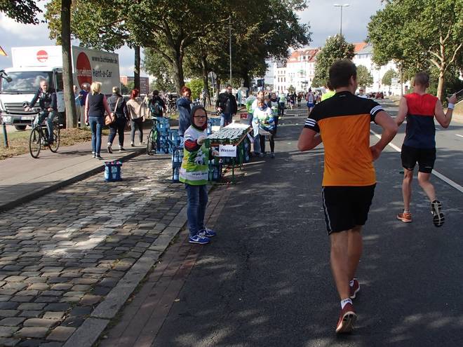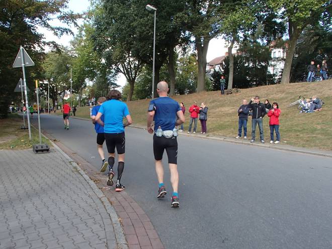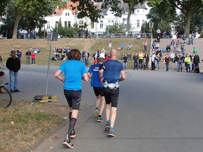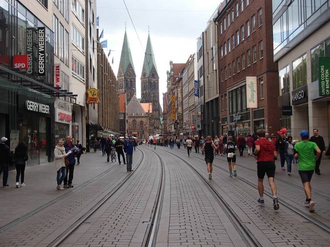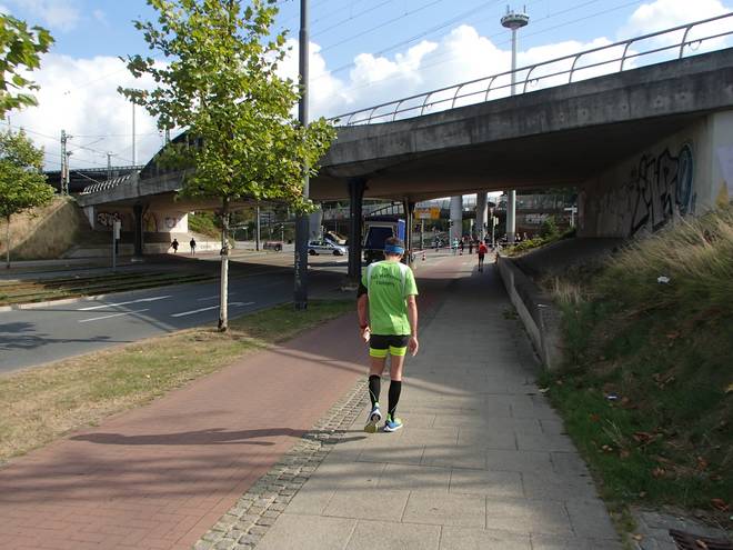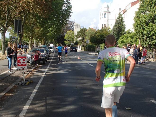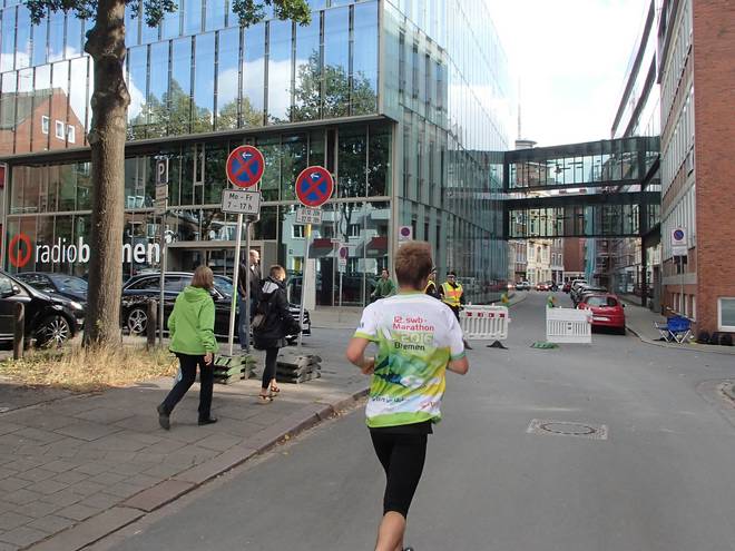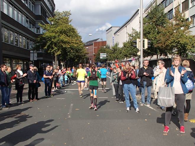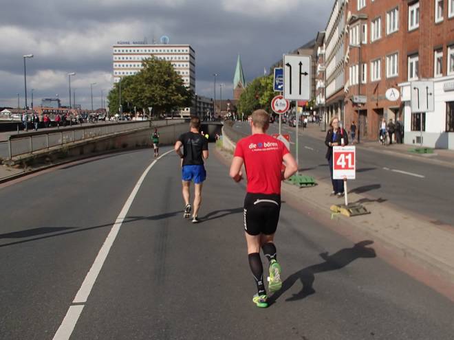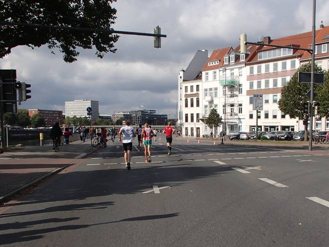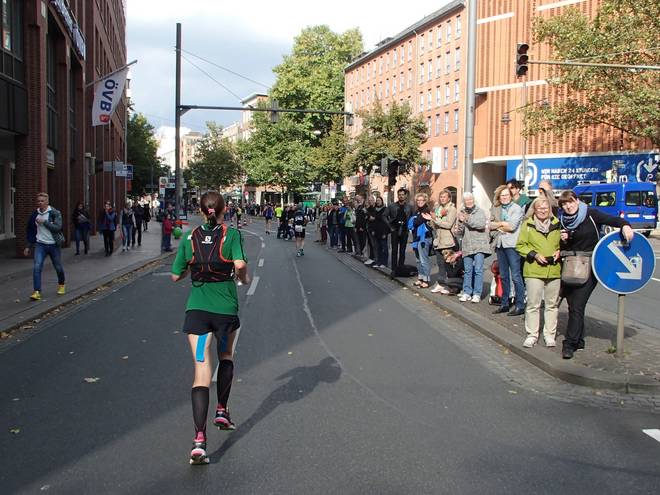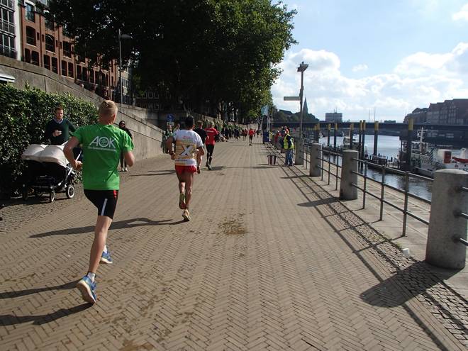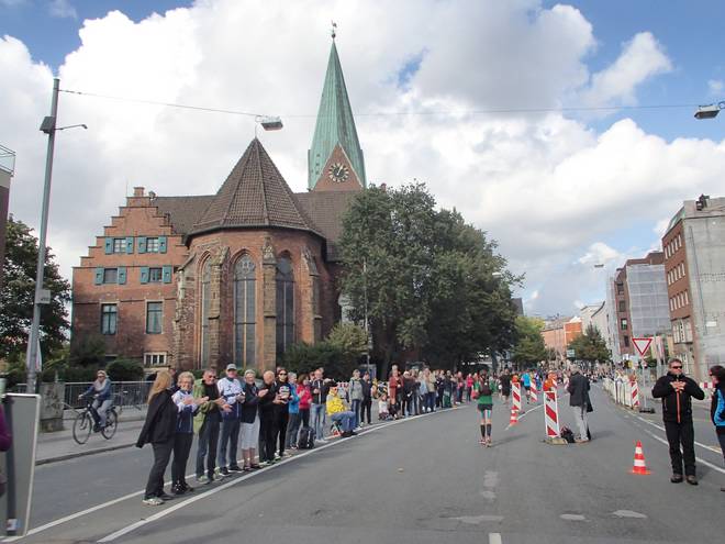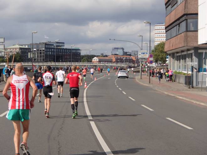 Martinistraße 13.05 Uhr / Km 41,4 ... und nebenbei noch die Dame mit dem Trikot von Hannover 96 überholen. |