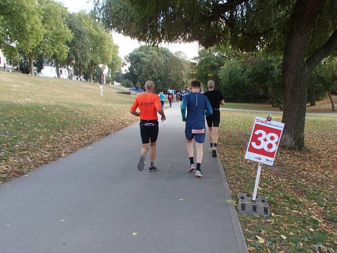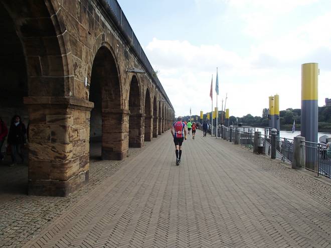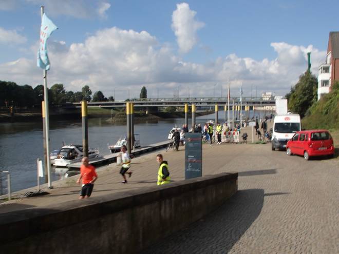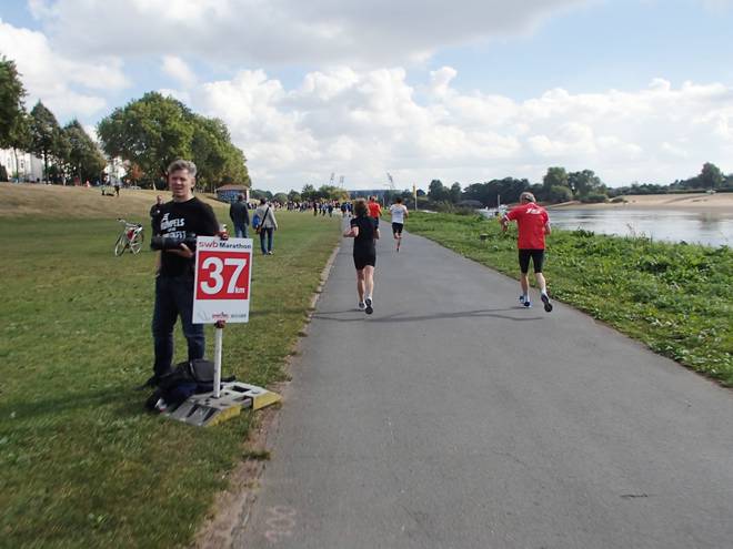 Weserpromenade 12.43 Uhr / Km 37,0 Weitere 20 dann auf dem 37. Kilometer. Jetzt waren es statt 87 nur noch 45. Das reichte noch bis kurz hinter Kilometer 39. |