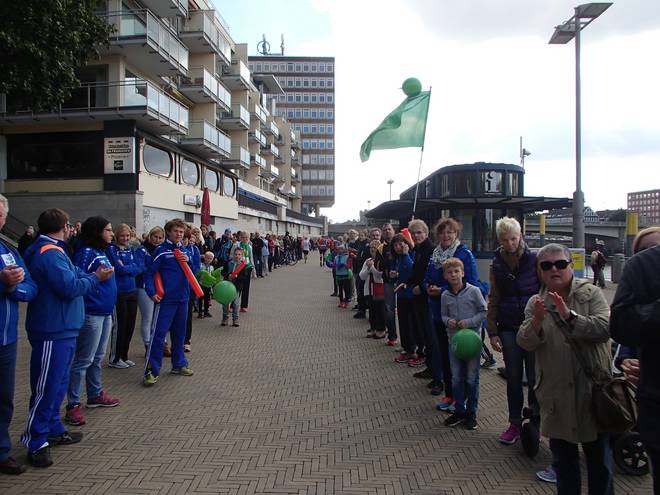 Franz-Böhmert-Straße Weserstadion 12.51 Uhr / Km 38,5 Grüne Becher? Da freute ich mich kurze Zeit auf Werder-Getränke, aber die Becher waren doch doch von der AOK. Genau wie bei allen anderen Verpflegungsständen auch. |