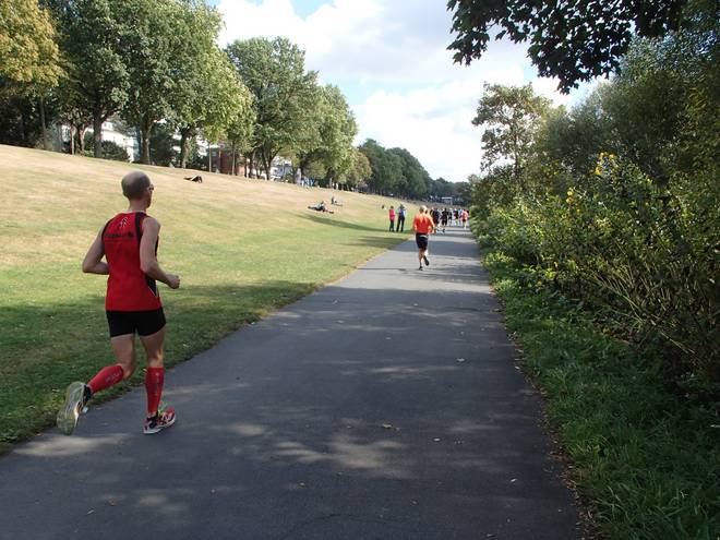 Weserpromenade 12.40 Uhr / Km 36,5 Mehr und mehr rann mir die Zeit davon. 22 Sekunden des Vorsprunges verlor ich auf dem 36. Kilometer. Foto: Tim Ernst |
