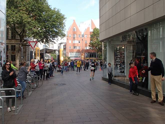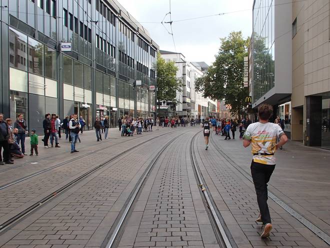 Obernstraße 13.07 Uhr / Km 41,8 3:27:07 Stunden. Und nur noch 400 Meter noch bis zum Ziel. |