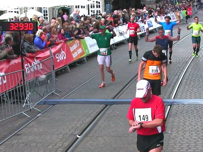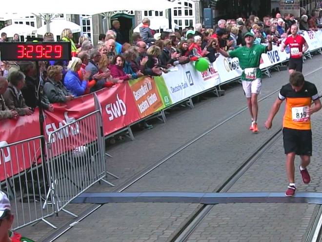 Am Markt 13.09 Uhr / FINISH 3:29:32 Stunden offiziell die Brutto-Zeit. Video: Davengo |