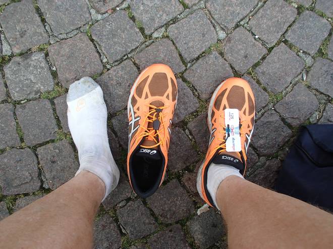 Domshof 13.16 Uhr Einmal den Schuh ausgezogen bekam ich ihn auch nicht mehr an. Mit der Socke ließ ich mir noch etwas Zeit. War kein so schöner Anblick... |