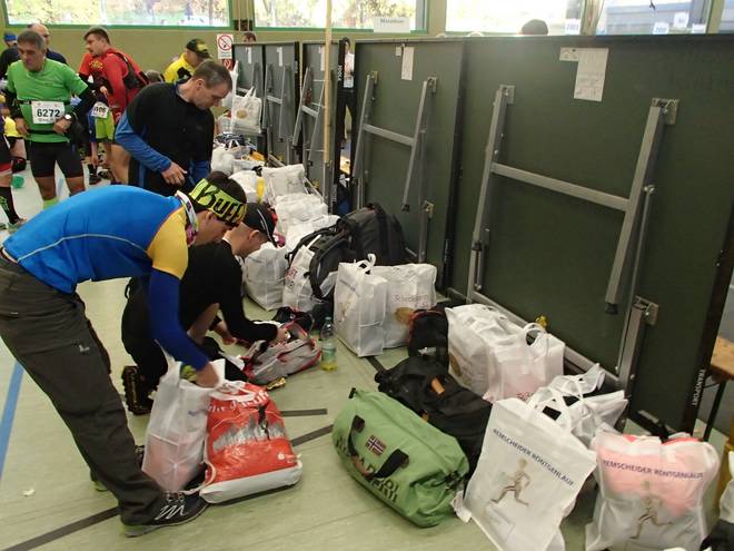 Sportzentrum Hackenberg 8.06 Uhr Gepäckabgabe war hier für Ultra-Läufer in Eigen-Regie zu händeln. Reichte ja. |