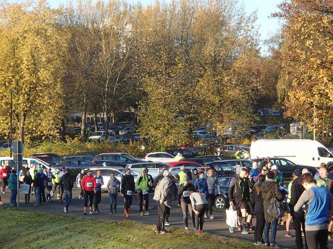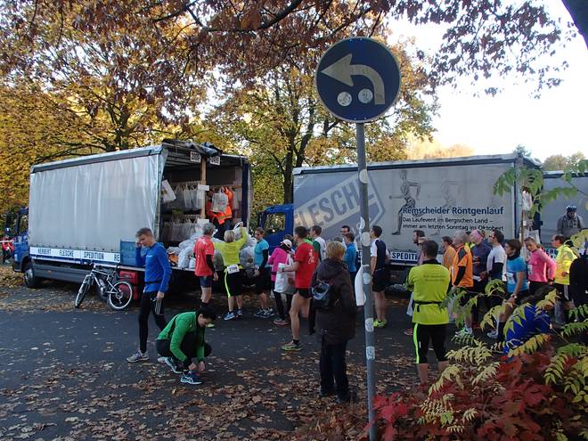 Hackenberger Straße 8.15 Uhr Staffeln, Marathon-Läufer und Halbmarathon-Läufer konnten hier ihre Sachen abgeben, um sie dann am jeweiligen Ziel bzw. Wechseln zurück zu erhalten. |
