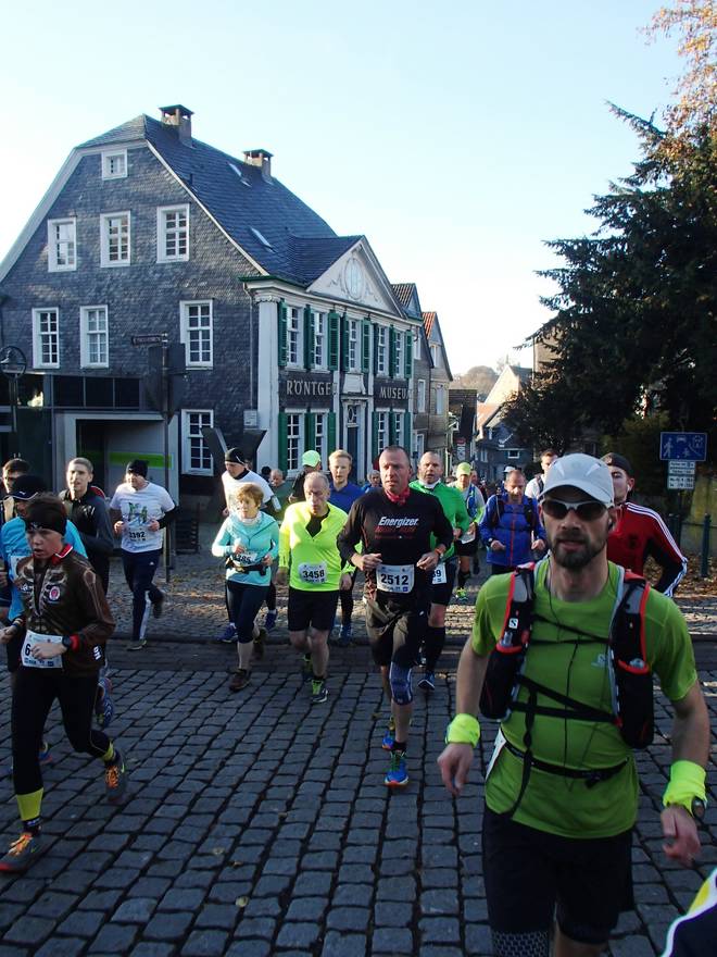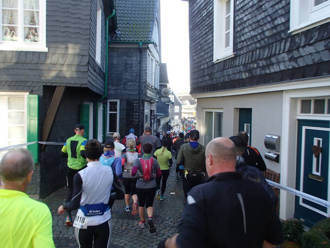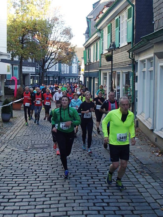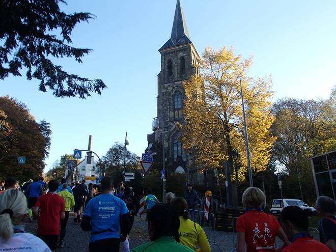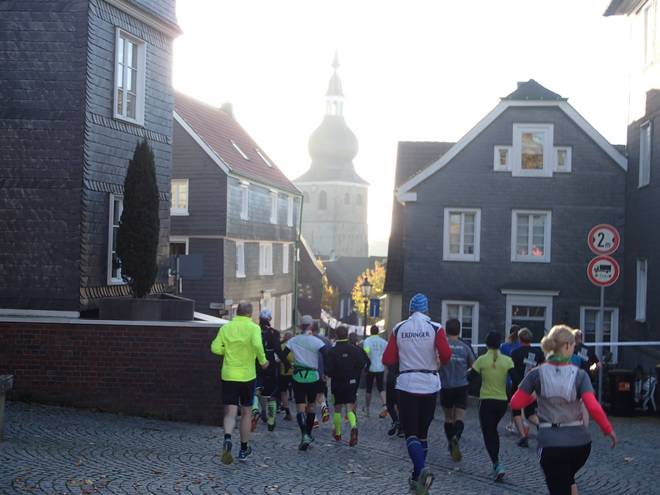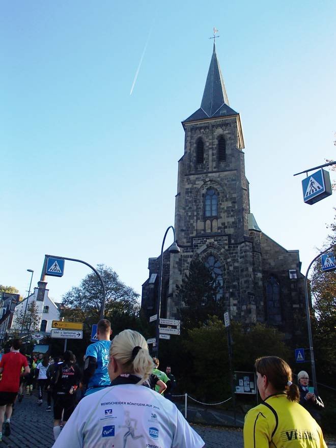 Am Schellenberg 8.46 Uhr / Km 2,2 Mit Blick auf die Evangelische Stadtkirche Lennep ging es dann rein in die Altstadt. |