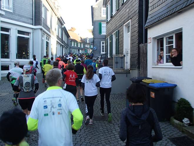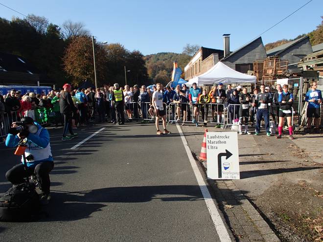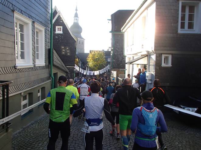 Hackenberger Straße 8.31 Uhr / Km 0,1 63,3 Kilometer mit rund 860 Höhenmetern lagen vor mir. Das war erst mein achter Ultra-Marathon. Von denen waren die Hälfte "nur" 50 Kilometer. |