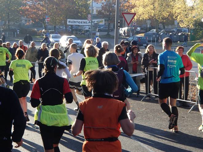 Hackenberger Straße 9.00 Uhr / Km 4,6 Die nächste Gelegenheit, den Lauf frühzeitig zu beenden. Wir waren zurück am Start. |