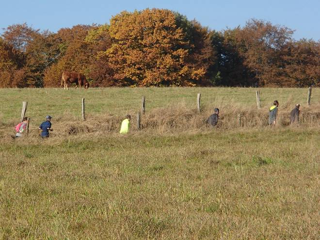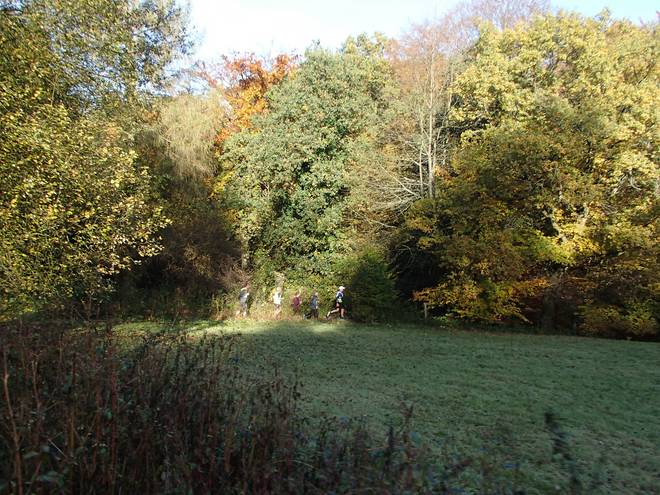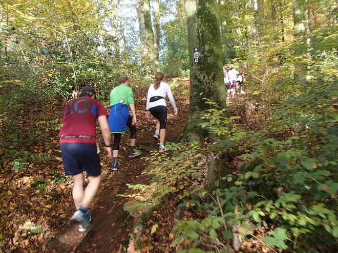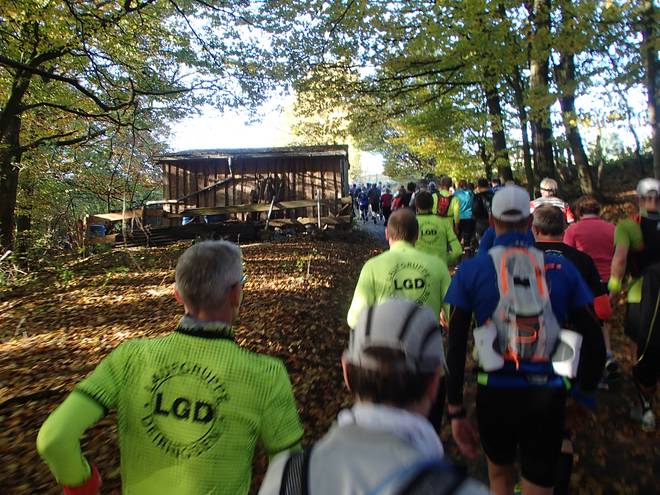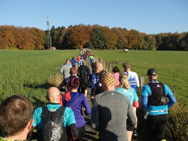 Grund / Oelingrath 10.23 Uhr / Km 17,0 Man hätte auch um den Hügel herumlaufen können. Aber man ließ und lieber oben drüber laufen. Oder besser... Gehen. |
