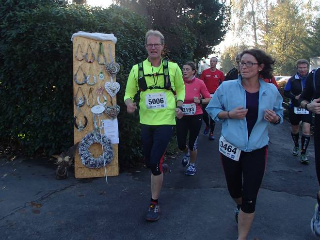 L216 Steffenshammer 10.46 Uhr / Km 20,9 Links der Weg für die Finisher beim Halbmarathon, rechts war für Marathon-Läufer, für die Ultra-Läufer und die Staffeln. |