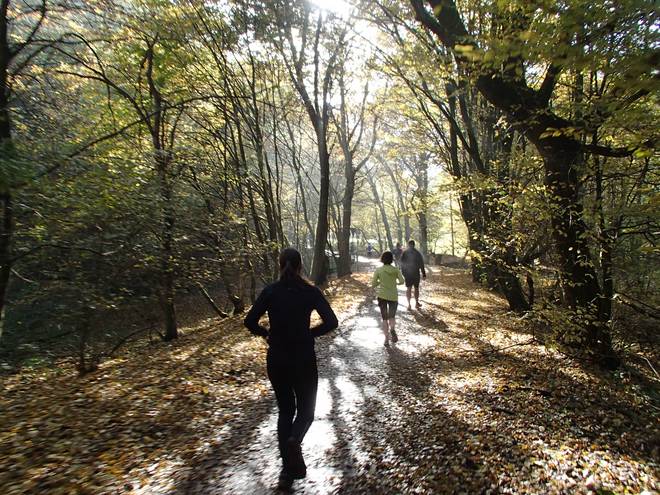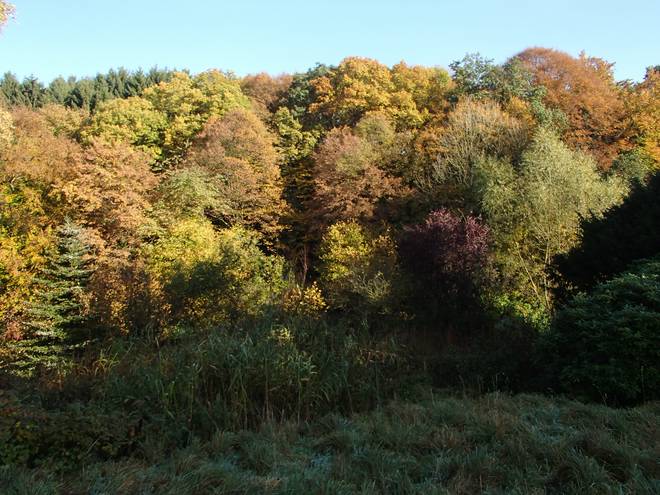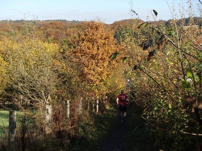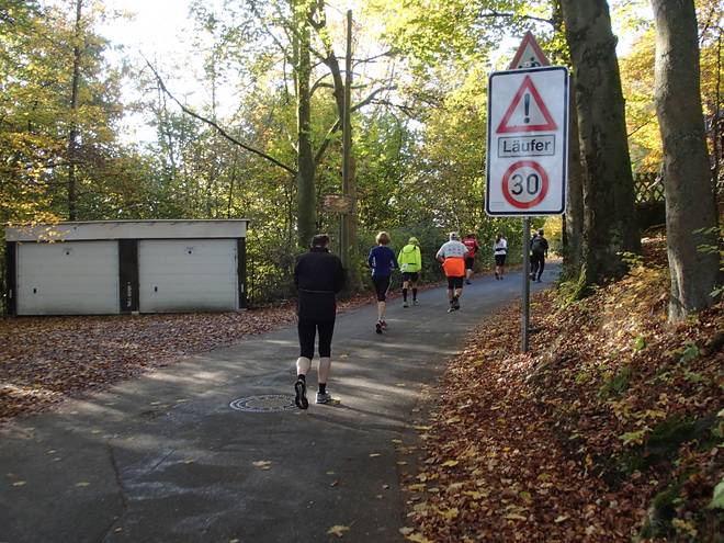 Schwelmer Straße 9.19 Uhr / Km 7,5 Naja... Grün und jede Menge herbstliche Brauntöne. |