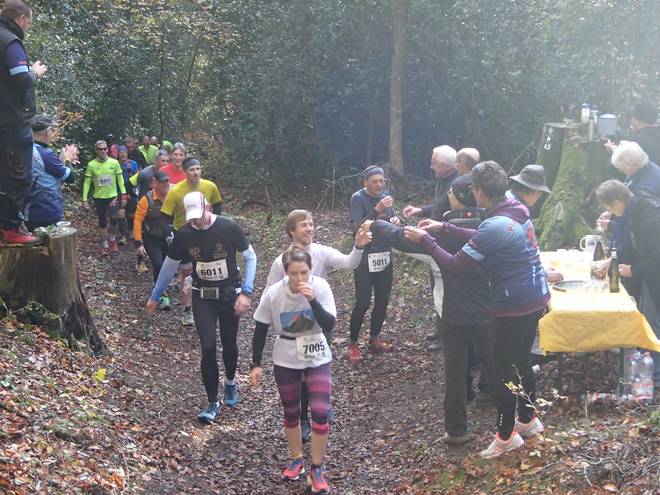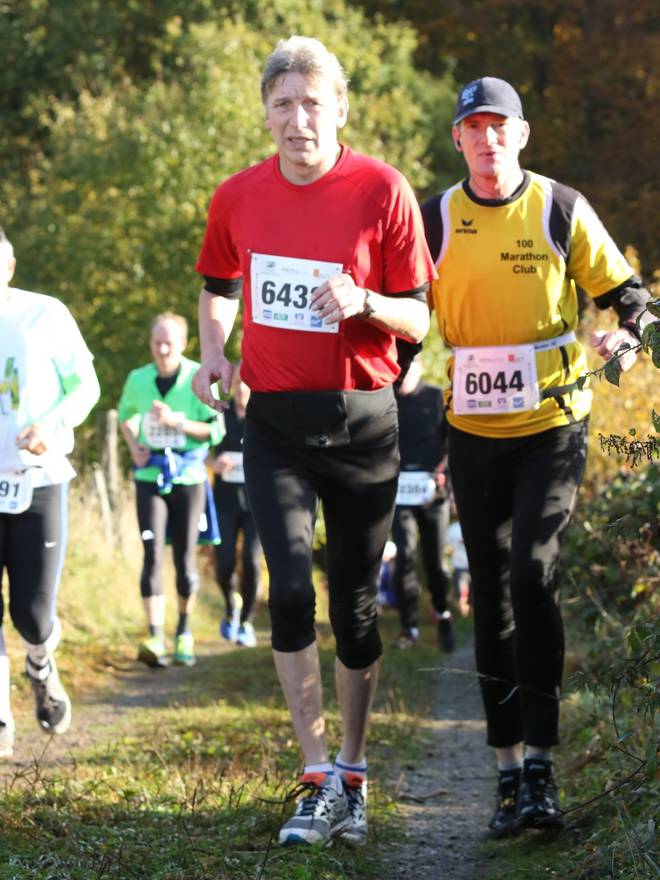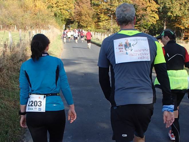 Farrenbracken 10.16 Uhr / Km 16,5 Happy Birthday Heike (links). Rechts läuft ihr Pacemaker. |