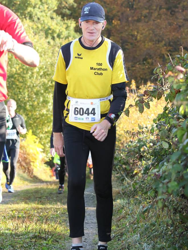 Wilhelmstaler und Haller Bachtal 9.10 Uhr / Km 6,0 Bis zum Halbmarathon war jeder Kilometer markiert. Später dann nur noch alle fünf Kilometer. |
