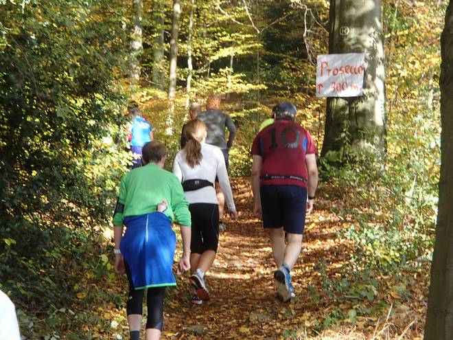 Grund / Oelingrath 10.27 Uhr / Km 17,5 Dafür gab es oben aber auch wie versprochen Prosecco. Zwar nur einen Fingerhut voll, aber immerhin. |