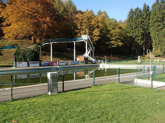 Freibad Eschbachtal 13.23 Uhr / Km 42,3 Badegäste gab es keine. Bei den Temperaturen hatte auch ich keine Lust, ins Wasser zu springen. |