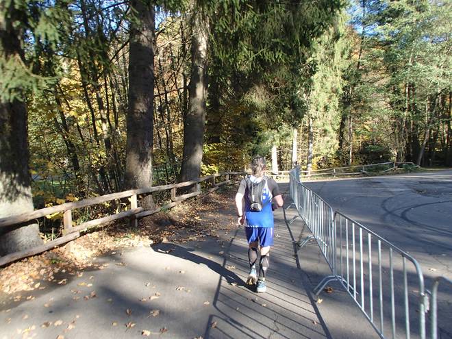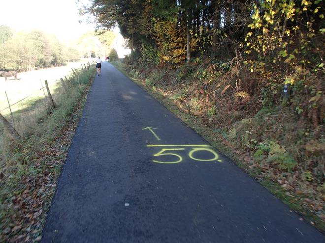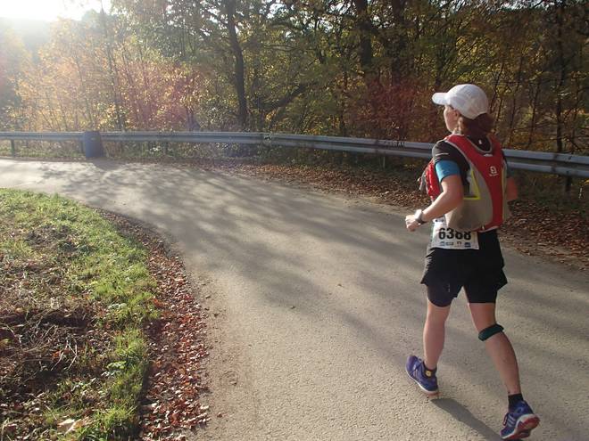 Bornbach 14.14 Uhr / Km 48,5 Erstmals seit dem Marathon-Ziel lief ich wieder mehr als einen Kilometer am Stück. Ein ziemlich schwerfälliges Laufen, aber ich lief. |