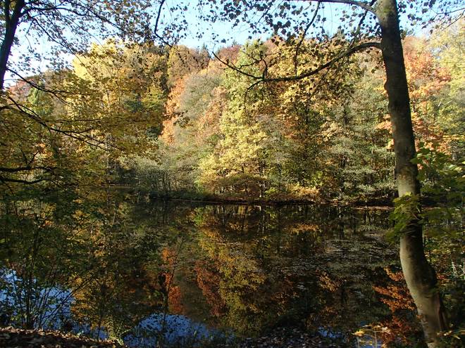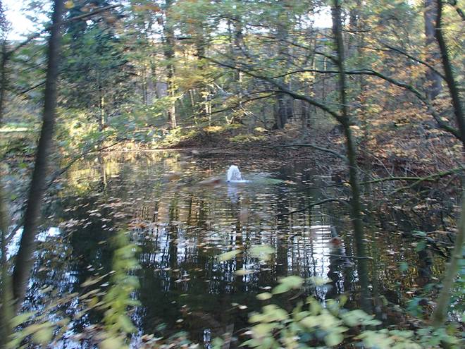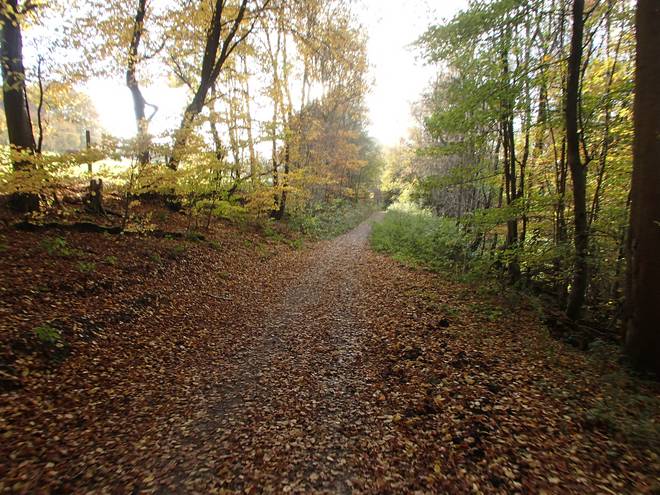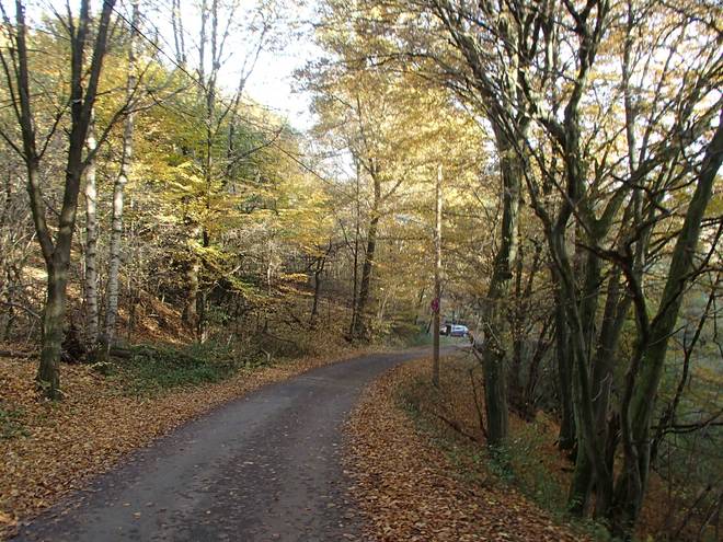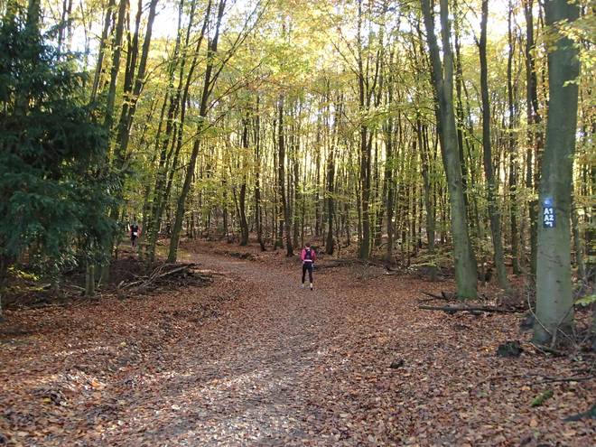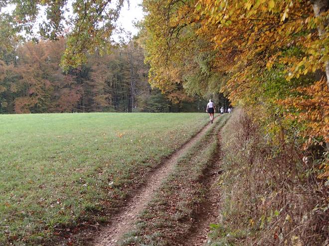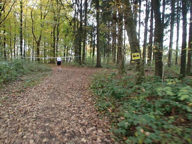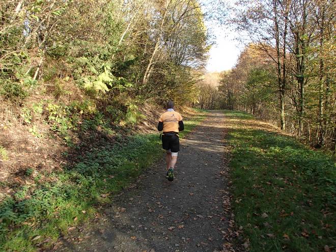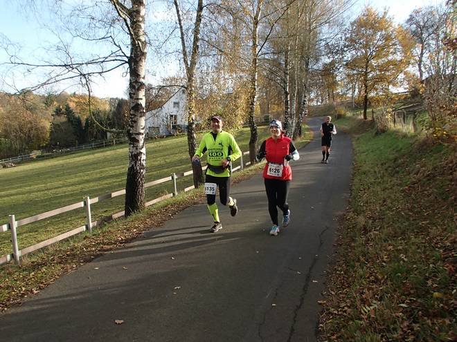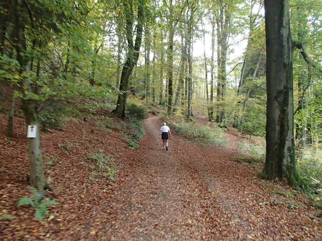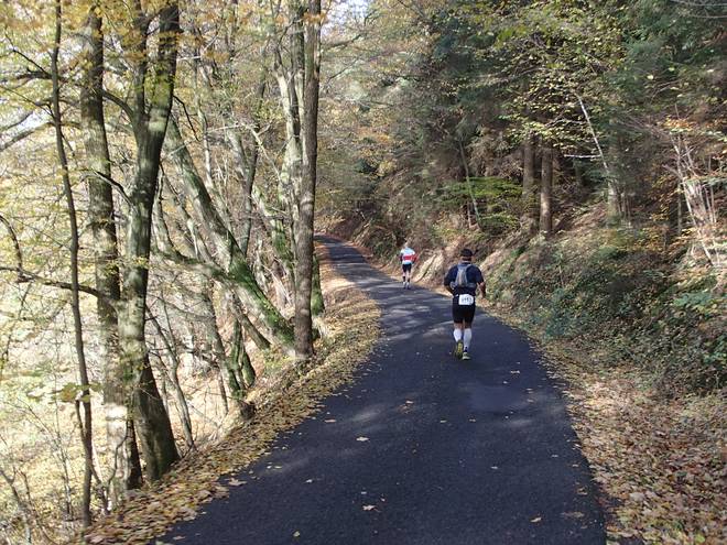 Lenneper Bach 15.42 Uhr / Km 60,0 Bergab auf Laub. Da mußte man gut aufpassen. So ganz wach war man nach mehr als sieben Stunden Laufen ja auch nicht mehr. |
