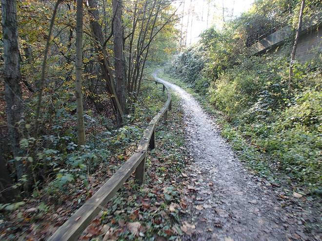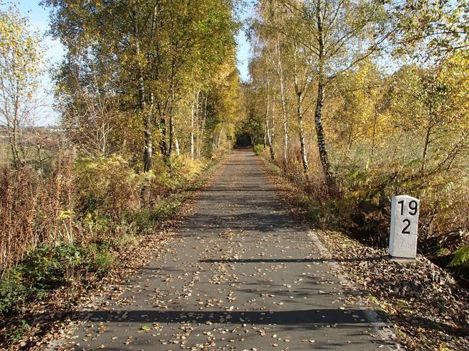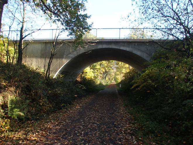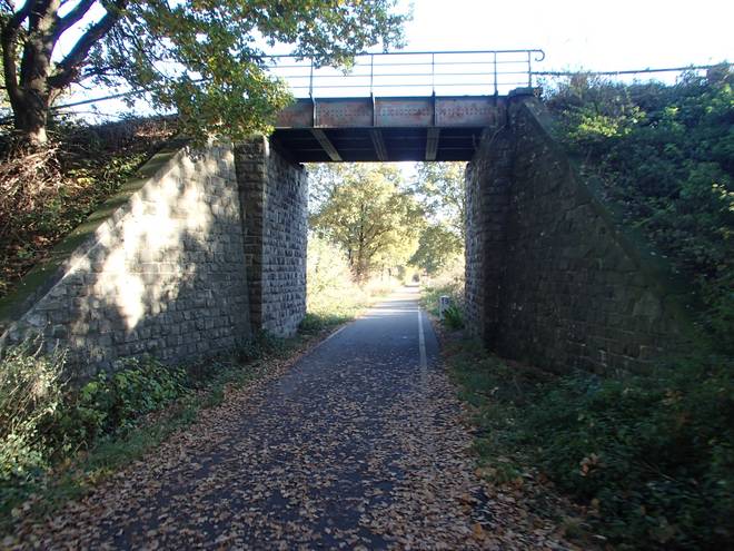 Bornbachstraße Bergisch Born 14.07 Uhr / Km 47,3 Die Balkantrasse war früher einmal eine Bahnlinie, wurde 2010 aber zum Wander- und Fahrradweg umgebaut. |