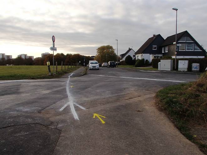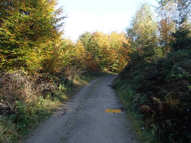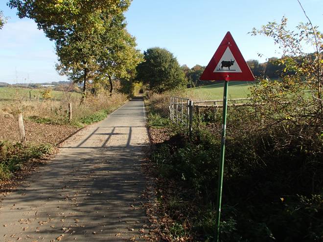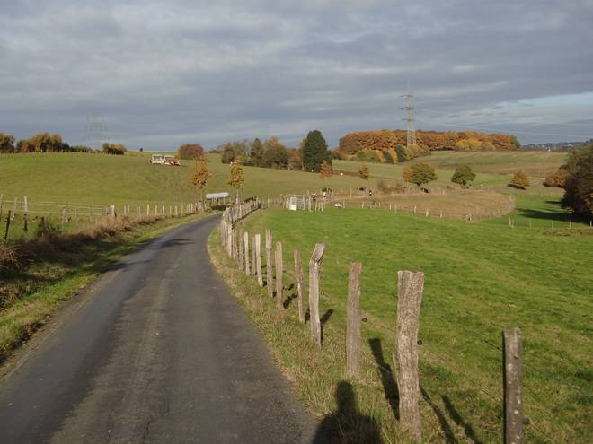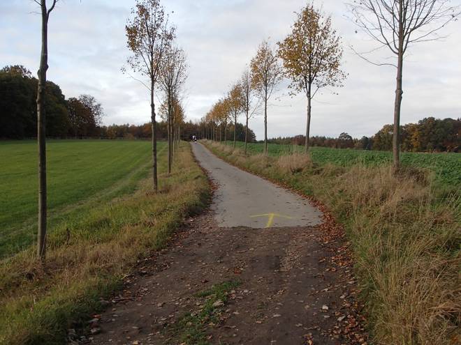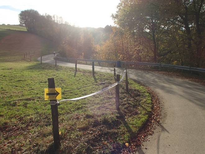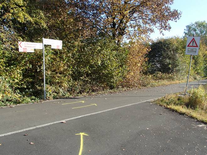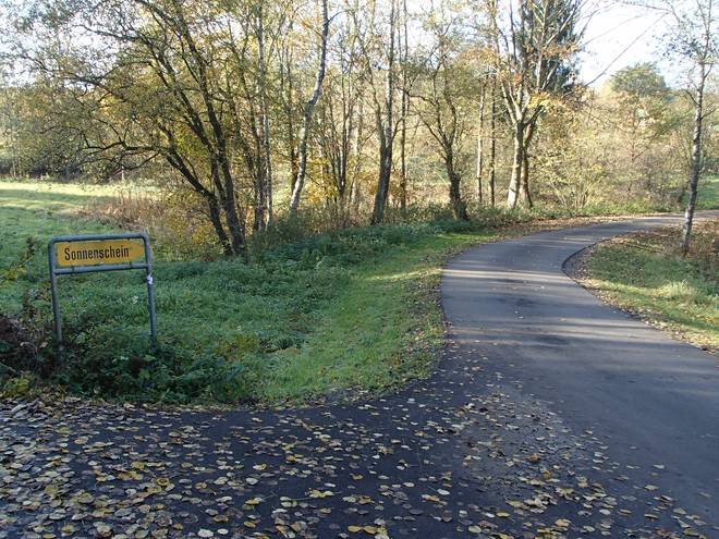 Huckeswagen Sonnenschein 14.23 Uhr / Km 49,5 Da lang ging es Richtung Sonnenschein. Aber Richtung Sonnenschein liefen wir nicht. |