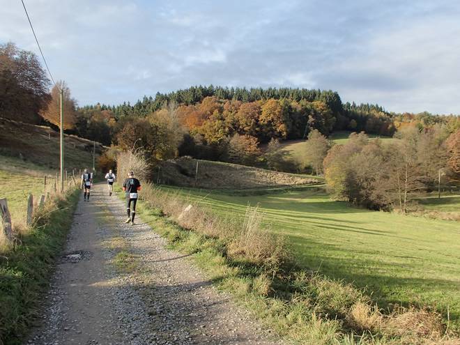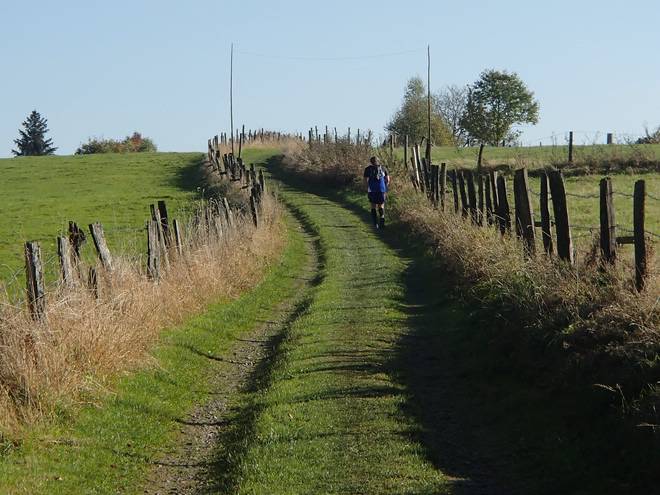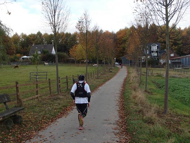 Dörpetal 14.40 Uhr / Km 52,0 Auf der nun wieder flacheren Strecke kam ich zurück ins Laufen, aber die Konkurrenz enteilte mir dennoch. |