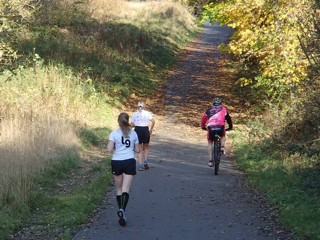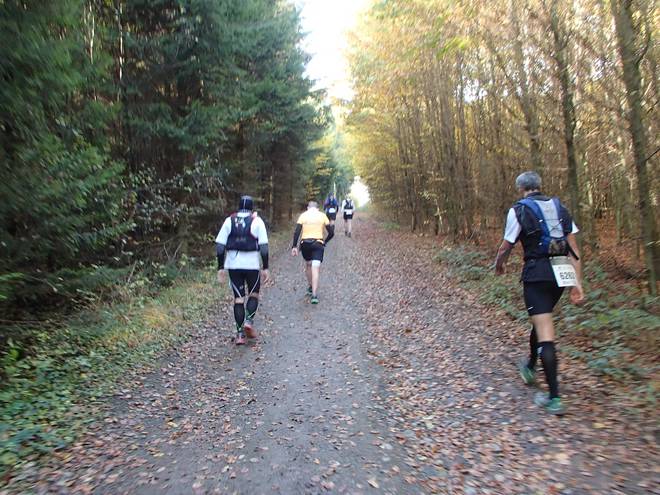 Winterhagen 14.27 Uhr / Km 50,5 Da wurde ich doch tatsächlich noch von einer sehr schnellen Staffelläuferin überholt. Ich dachte, die wären schon alle längst durch. |