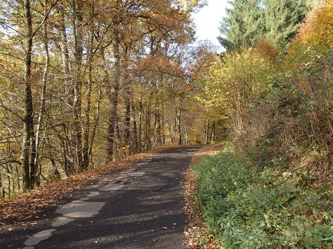 Busenberg 14.32 Uhr / Km 51,0 Kaum oben angekommen ging es schon wieder bergab. |