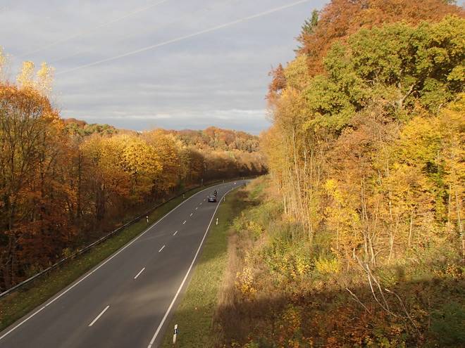 Bornbach 14.11 Uhr / Km 48,0 Zumindest ging es hier eine ganze Weile nur geradeaus und nur leicht bergab. |
