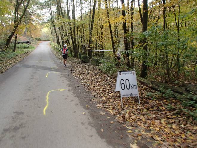 Nagelsberg 15.42 Uhr / Km 60,0 7:10:38 Stunden. Nach meinem Plan am Start wollte ich schon im Ziel sein, aber die Realität hatte dann doch gewonnen. Die letzten fünf Kilometer war ich aber immerhin wieder in 7:03 Min/Km gelaufen. |