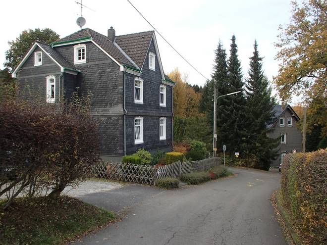 Oberstraße Bergisch Born 14.03 Uhr / Km 47,0 ... und da an der Ecke hatten wir mit 335,5 Höhenmetern den höchsten Punkt der Strecke erreicht. |