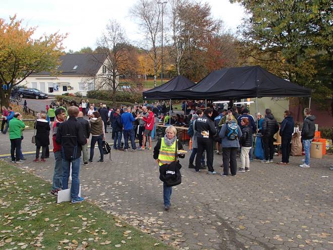 Sportzentrum Hackenberg 17.10 Uhr An der lecker duftenden Ziel-Verpflegung wanderte ich vorbei. Mir war kalt und ich wollte nur schnell wieder ins Warme. |