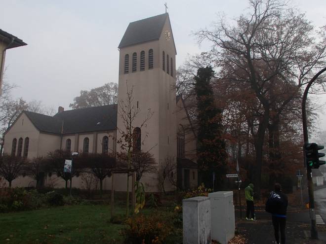 Wallstraße St. Barbara Kirche 9.21 Uhr Bis hierher war der Weg zum Veranstaltungsgelände prima ausgeschildert, aber dann gab es keine Schilder mehr. Handy und ein Hundebesitzer halten dann aber weiter. |