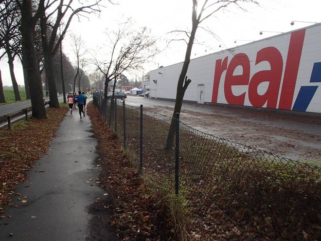 Langenbochumer Straße Runde 3 13.37 Uhr / Km 34,0 Gefühlt hatte ich an Tempo verloren. Aber die Monschau-Läuferin war weit hinter mir und kam auch nicht näher. Dann konnte ich so langsam nicht sein. |