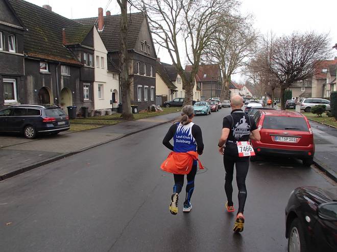 Recklinghäuser Straße Runde 1 11.32 Uhr / Km 11,0 War aber kein Problem. Der Verkehr hielt sich in Grenzen, außerdem finden die Läufer hier dreimal im Jahr statt. Da gewöhnen sich die Anwohner dran. |