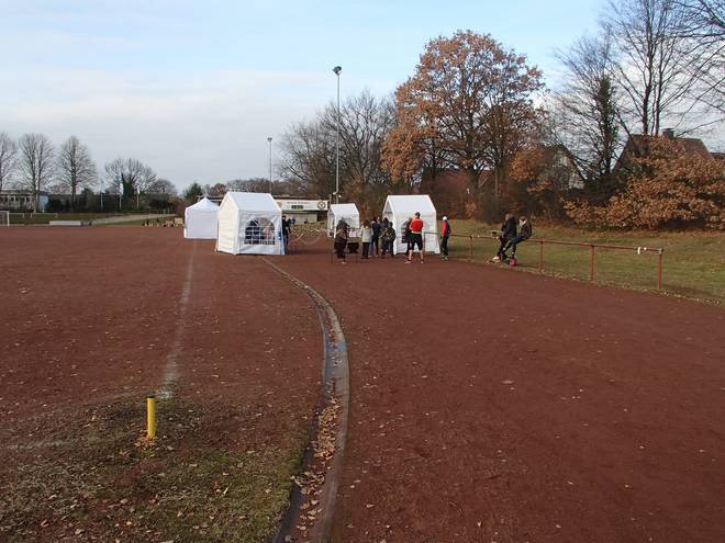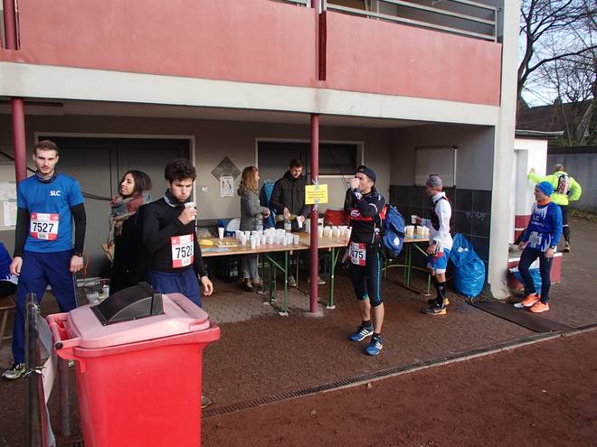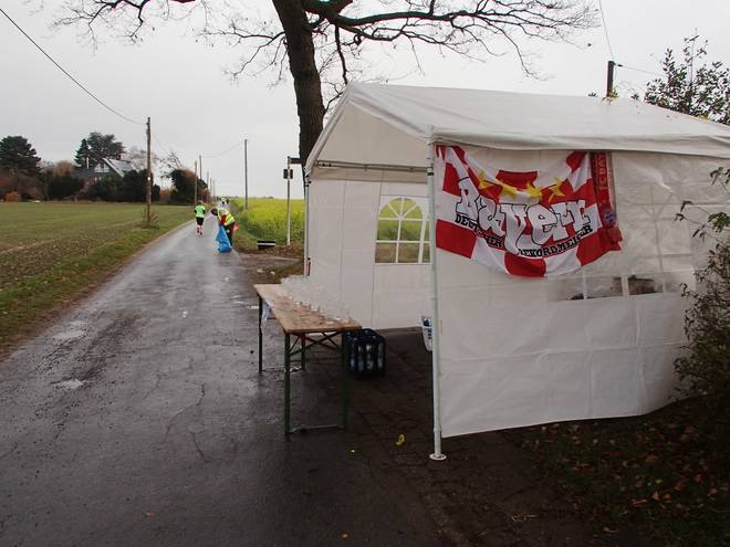 Sportplatz SuS Bertlich 1945 14.26 Uhr Schnell noch bei der Ziel-Verpflegung vorbei geschaut und dann ab in die warme Umkleidekabine. |
