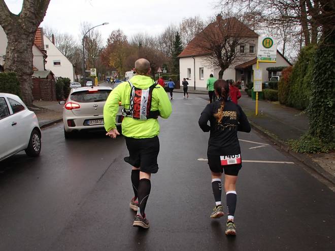 Kötterweg Runde 2 12.03 Uhr / Km 16,5 Durch eine Pinkelpause verlor ich meinen Vorsprung auf die Vier-Stunden-Durchgangszeit. |