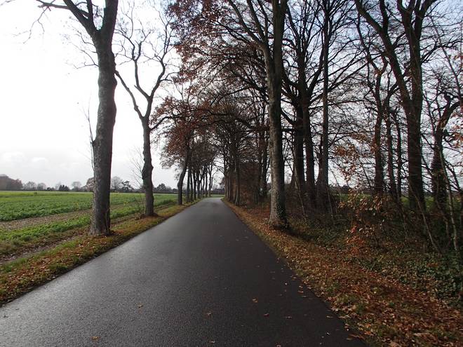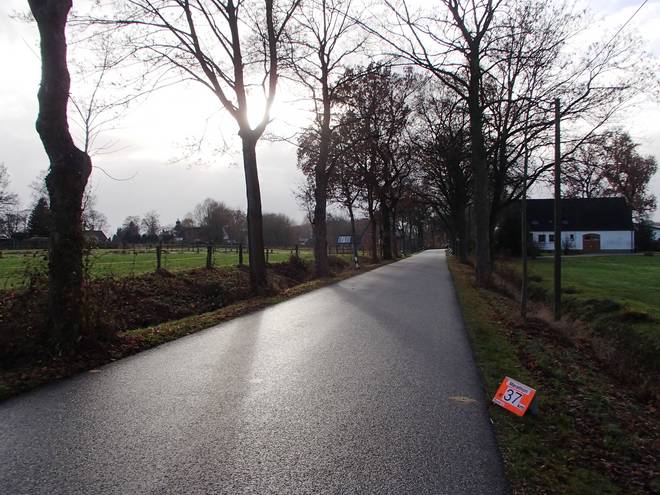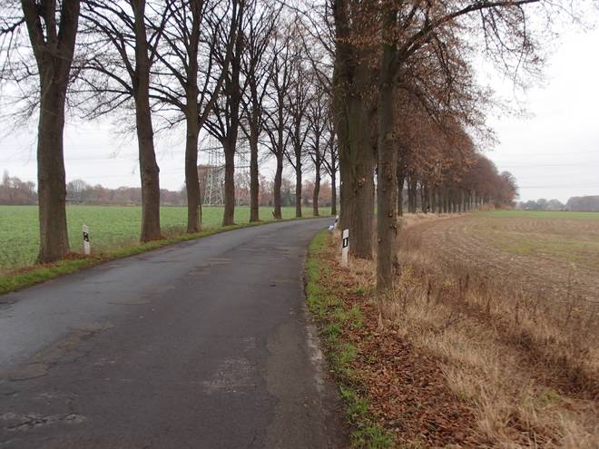 Linder Weg Runde 1 11.12 Uhr / Km 7,4 Auch wenn die Straße naß war, Regen hatten wir nicht. |