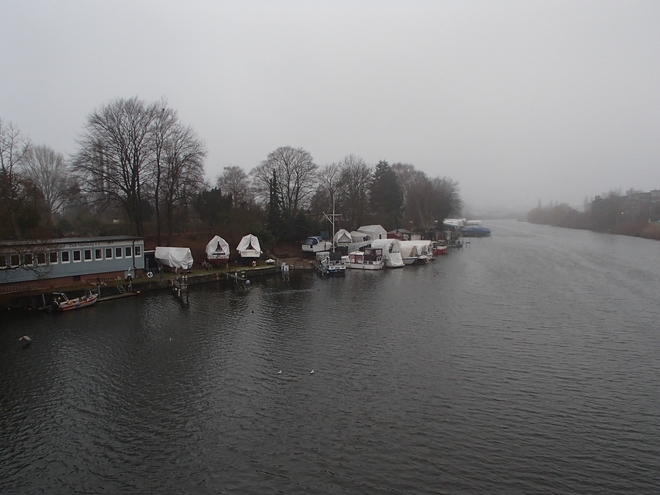 Südkanal Bille Billerhuder Insel 9.25 Uhr Von mir zu Hause bis zum Startplatz sind es genau 8,5 Kilometer. Mit Bus und Bahn war ich satte 2:03 Stunden unterwegs. Aber vor dem Marathon anderthalb Stunden mit der Sporttasche durch die Stadt wandern oder alternativ 45 Minuten Laufen wäre auch nicht clever. |