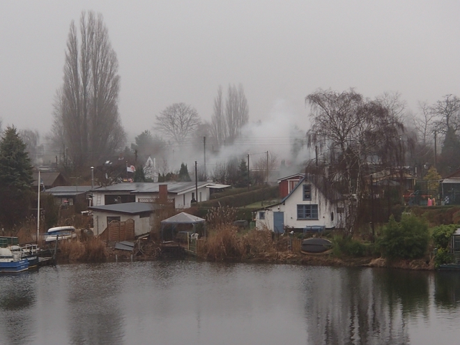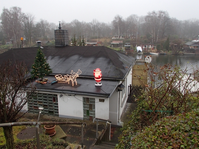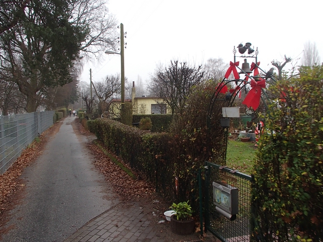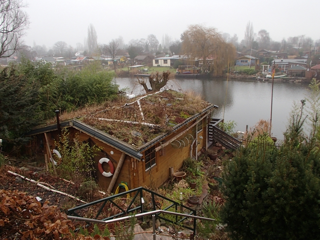 Billerhuder Insel 9.33 Uhr Abgesehen von Ruder- und Angelclubs direkt am Wasser ist die Billerhuder Insel voll mit Kleingartenvereinen. Die Parzellen sind verschieden gut bestellt. Einige sind sehr liebevoll gestaltet, andere sehen aus wie seit 50 Jahren verlassen. |