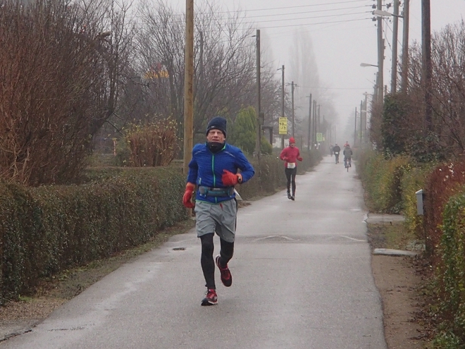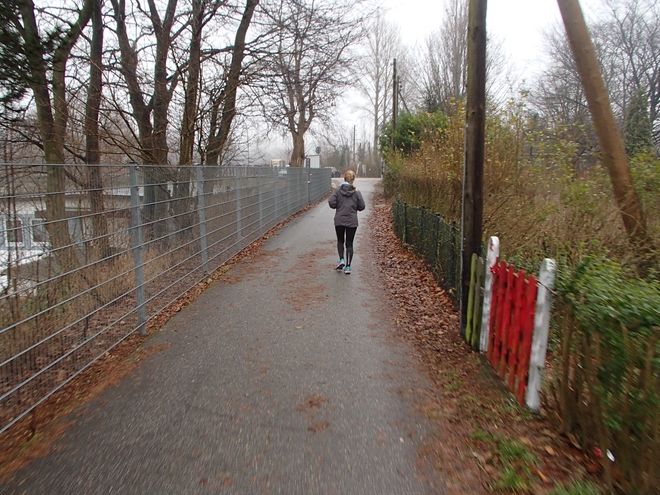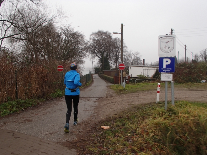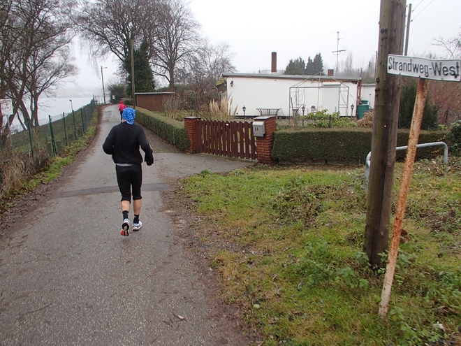 Runde 14 13.30 Uhr / Km 31,7 Immer noch diesig und kalt. Aber Läufer, die hier mehrfach dabei waren schwärmten alle davon, wie schön es hier im Frühling und Sommer war. |