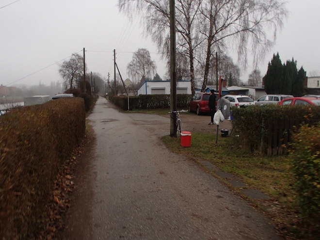 Runde 11 12.43 Uhr / Km 25,0 Silvesterfeuerwerk durfte zwar erst ab 18.00 Uhr abgefackelt werden, aber da kümmerte man sich rund um die Billerhuder Insel herzlich wenig. Hier wurde sogar so geknallt, daß dicker Rauchwolken über die Parzellen zogen. |