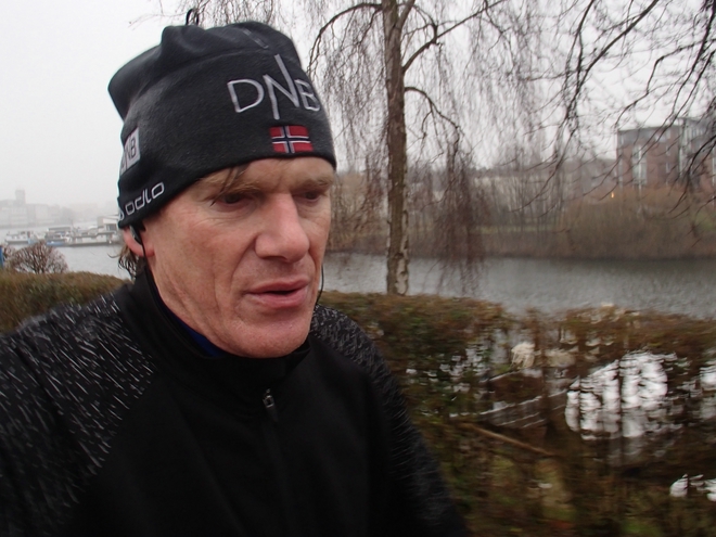 Runde 5 11.15 Uhr / Km 10,8 Das Wetter wollte nicht besser werden. Die Temperatur ging zwar bis Rennende auf 3°C rauf, aber es blieb diesig und auch latent windig, was sich vor allem auf der langen Geraden im Süden der Insel bemerkbar machte. |
