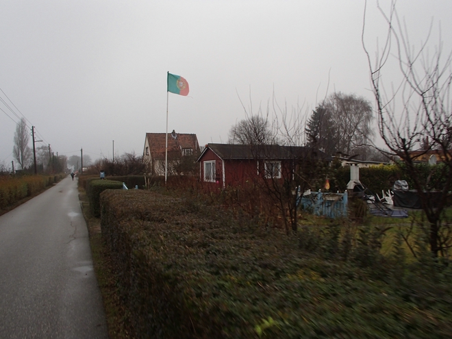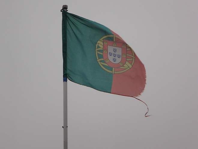 Runde 18 14.42 Uhr / Km 42,9 Für den 5. November 2017 war ich für den Marathon in Porto angemeldet. Da hätte man ruhig eine heilere Fahne aufhängen können. Im Vergleich zu manch anderen Fahnen rund um den Kurs war diese andererseits noch sehr gut erhalten. |