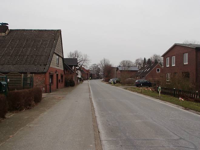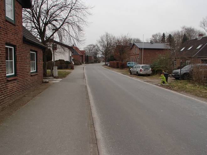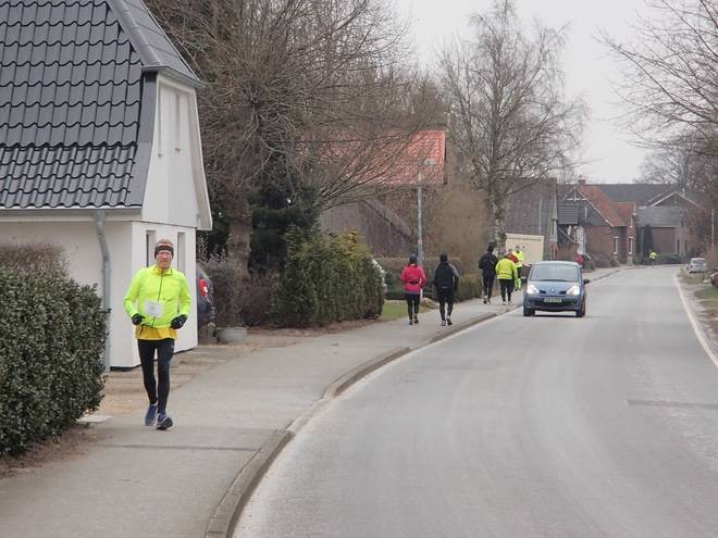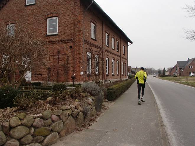 Runde 1 10.08 Uhr / Km 1,4 ... an Start und Ziel vorbei weiter nach Westen und dort raus aus dem Dorf und noch so 300 Meter weiter... |